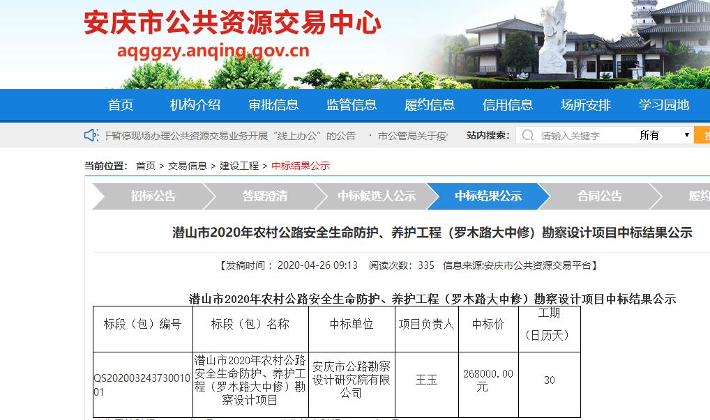公司中標(biāo)潛山市2020年農(nóng)村公路安全生命防護(hù)、養(yǎng)護(hù)工程(羅木路大中修)勘察設(shè)計項目